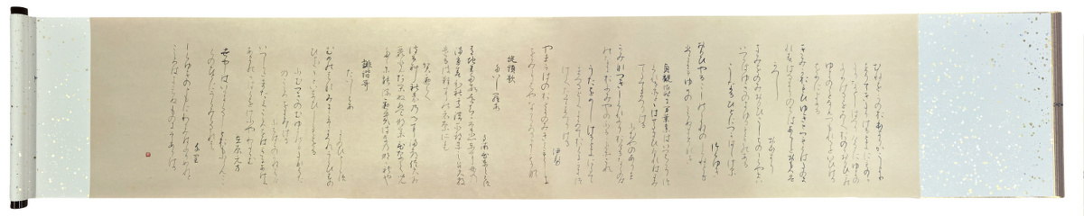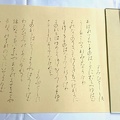 第47回書学院書作展に出品しまして、この度素晴らしく栄誉ある書学院院長賞を賜りまして誠に有難うございました。 書学院に入りまして二年間、院長先生を始め 諸先生方のご指導と、事務局の方々、クラスの皆々様から頂いたご厚意に対し感謝に堪えません。 初心者で入校し、授業で学んだ後 休日は殆どの時間を書道に当てて 少しでも書の技術を身に着けたいと焦った時がありましたが、基礎科から専攻科へと進むに連れ、書道史を学び、墨の濃淡 仮名の取組、条幅へと課題が進み 手習いだけでなく 目習いも大切なプロセスだと知るようになりました。 顔真卿を書いた時に、先生より 私に合ってるかもしれないと言って頂いた言葉に促され、卒業制作には「祭姪文稿」を課題に選びました。 顔真卿の特徴的な筆遣いのご助言を頂きながら繰返し取組んだ結果、この賞に導いて戴けました。 この賞を糧に、更に精進し励んで参りたいと存じますので 今後ともご指導ご鞭撻賜りたく、どうぞ宜しくお願い申し上げます。