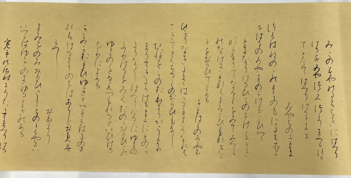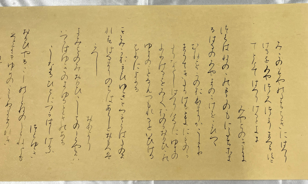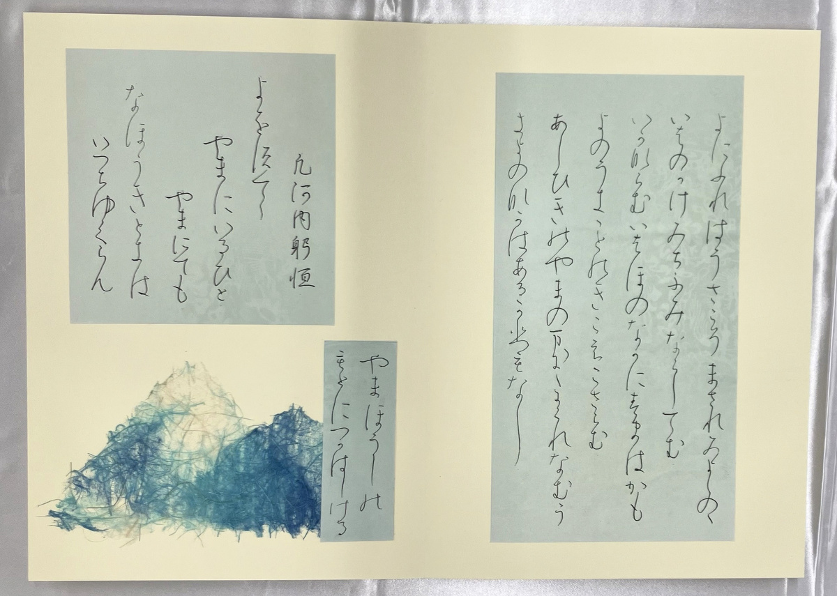 書作展に出品いたしました「高野切第三種」は、筆選びや墨の濃さ、カスレ具合などに苦労し、何度も授業で細かく指導していただきました。特別研修を経てようやく形になり提出する一枚が完成した際は、本当に嬉しく安堵の気持ちがこみ上げました。