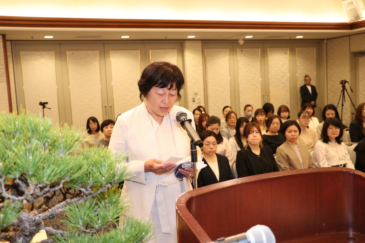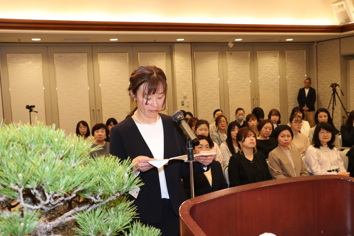 卒業生を代表して書道師範科、ペン師範科よりそれぞれ1名ずづ、謝辞を述べられました。書学院での学びで得たもの、講師の先生方への感謝、そして今後の精進の意気ごみを、率直な言葉で語ってくれました。