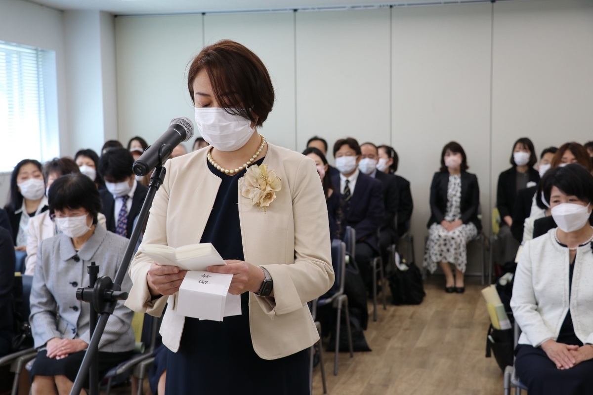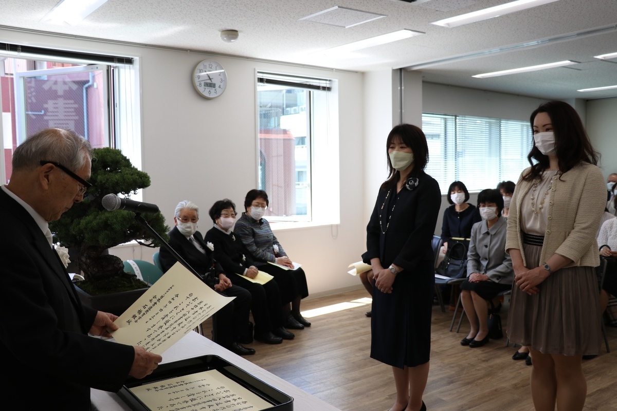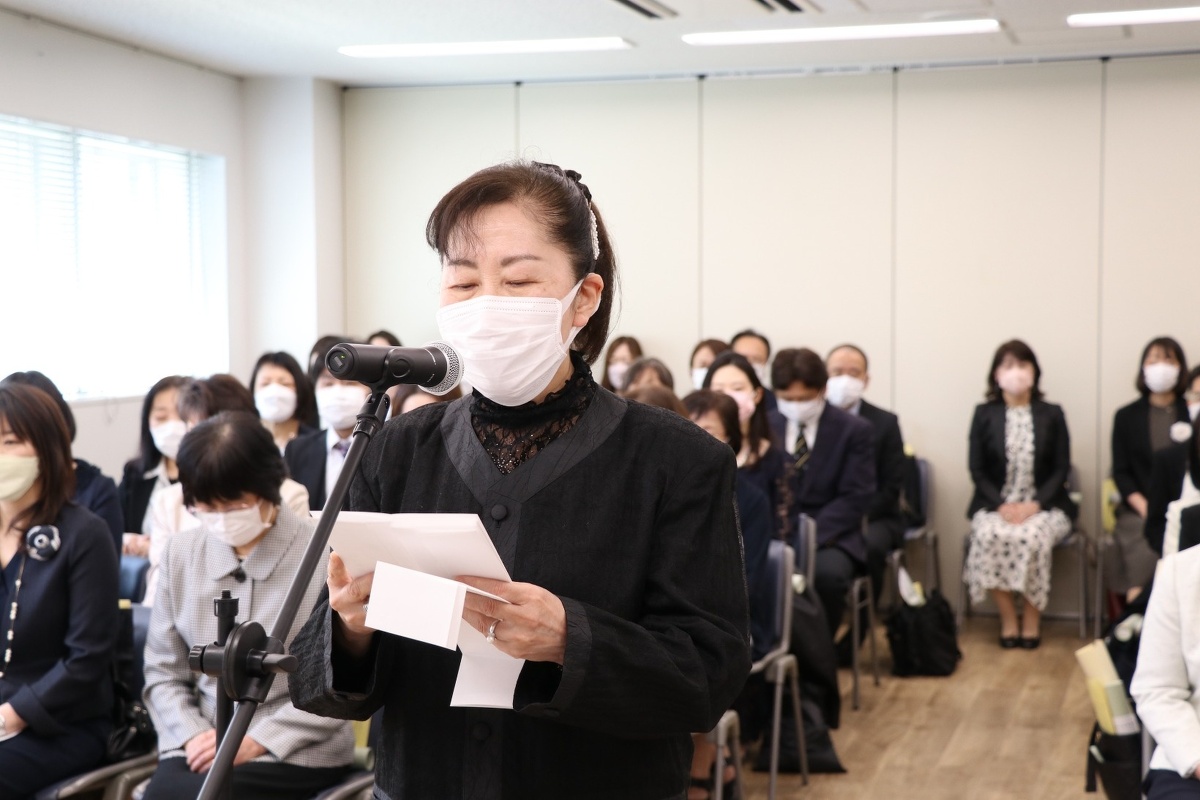 卒業生を代表して書道師範科・山田賀子さん、ペン師範科・濱田愉子さんが謝辞を述べられました。ご自身の体験、苦労、書友との励まし合い、ご指導いただいた先生方への感謝、そして今後の精進の気持ちを、率直な言葉で語られました。