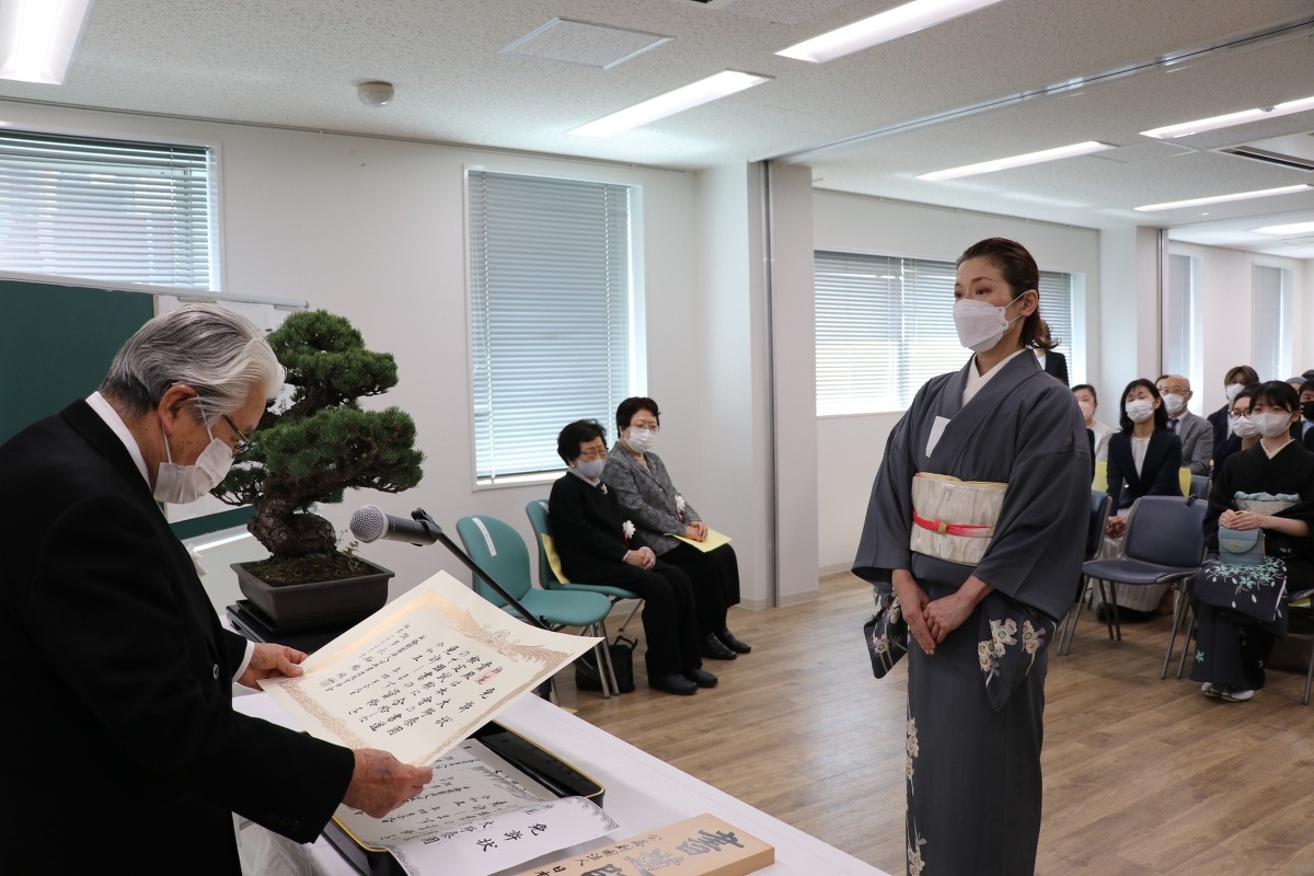 書道師範科、ペン師範科それぞれの全課程を修了、卒業試験に合格された68名の方々が晴れて卒業を迎えました。卒業式には大阪からの1名を含む50名の方々が参加されました。